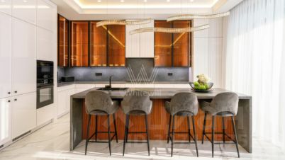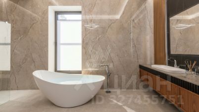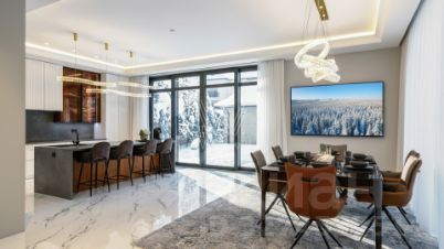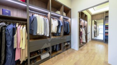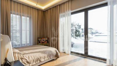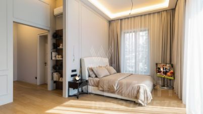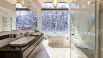 ID: 13999В одном из самых респектабельных уголков РублёвоУспенского шоссе - в 6 км от МКАД - расположено уникальное домовладение ''Obsidian House'' на участке 142 сотки. Особняк площадью 2 100 м выполнен в современном стиле с подчёркнутой архитектурной пластикой: фасад облицован клинкером JANINHOFF, а дорожки по территории вымощены ручной формовой брусчаткой Klinkerwerke Muhr. Резиденция полностью готова к проживанию, подключена ко всем коммуникациям и представлена ''под ключ'' с эксклюзивной дизайнерской отделкой и мебелью ведущих брендов мирового уровня. Входная группа открывает пространство первого этажа: две гардеробные с мебелью Porada и Frato, холл и объединённая зона гостиная - кухня - столовая с панорамными видами на участок. Гостиная со вторым светом и потолками почти 10 метров, камином и видом на парк. Центральная стена оформлена итальянским мрамором в раскладке ''бабочка'', создающей скульптурный эффект. В интерьере - диван Budapest и консоль Guell от Baxter, журнальный стол Minotti Song, аксессуары Bosa, предметы Ulivi и Smania. Обеденная зона - стол Minotti Linha на 12 персон, светильники HENGE и Terzani. Кухня - Siematic, с техникой GAGGENAU, оформлена лаконично и функционально. Также на этаже: кабинет с библиотекой (Emmemobili, Rugiano), гостевая спальня с ванной и гардеробной (Porada, Rugiano), две гостевые ванные комнаты и полноценный SPA-комплекс с бассейном, сауной, хаммамом и тропическим душем. Оконные системы SCHUCCO и двери RIMADESIO задают архитектурную точность, а стеклянный лифт добавляет драматургии пространству. Приватная зона второго этажа выстроена вокруг просторного холла с зонами для отдыха и библиотекой. Также, здесь расположены пять спален - каждая с собственной гардеробной и санузлом. Один из мастер-блоков занимает площадь 158м и имеет отдельную лестницу, ведущую напрямую с первого этажа, обеспечивая абсолютную приватность. Внутри - просторная спальня, кабинет, ТВ-зона, гардеробная и ванная комната с видом на лес. Второй мастер-блок - полноценный сьют с собственной гостиной, рабочей зоной и спальней, который занимает площадь 83м. Интерьеры оформлены мебелью Rugiano, RIMADESIO, Minotti, Frato и Porada, свет - Flos, Foscarini, Tom Dixon. Планировка позволяет разделить этаж на приватные и семейные зоны, сохраняя ощущение масштаба и уединения. На третьем уровне - терраса-гостиная на уровне крон деревьев. Пространство можно использовать как приватный этаж для старшего ребёнка - с собственной гостиной, гардеробной, спальней и постирочной - или как полноценный гостевой блок для близких. Также предусмотрена зона для тренажёрного зала. В оформлении интерьера используются бренды: Rugiano, Minotti, Frato, Porada, Aromas del Campo.Состав помещений:Цоколь: хозяйская зона: кинотеатр, винная комната, небольшая гостиная, санузел, вспомогательные помещения: спальня для персонала с санузлом, прачечный комплекс, 2 кладовые комнаты, серверная, тех. помещение бассейна, вентиляционная, помещение для спец. инвентаря.1-й этаж: холл, две гардеробные для верхней одежды, гостевой санузел, кабинет с санузлом, гостиная-кухня-столовая, спальня с гардеробной и ванной комнатой, Spa-зона с бассейном, сауной и тропическим душем.2-й этаж: просторная мастер-спальня с зонами гостиной и библиотеки, ванная комната с панорамными окнами и вместительная гардеробная, 2 спальни с гардеробными, ванными комнатами и просторными террасами с потрясающим видом, сервисная комната с постирочной.3-й этаж: поме