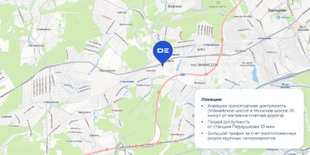 ID 9 374. Двухэтажное здание с цоколем на первой линии 1-го Успенского шоссе в деревне Новодарьино. Жилой район из частных домов, большой поток пешеходного и автомобильного трафика, рядом остановка общественного транспорта. Окружение продуктовый рынок ''Лапино'', супермаркеты ''ВкусВилл'', ''Азбука вкуса''.Объект общей площадью 1 200 м² с открытой планировкой. Электрическая мощность выше 100 кВт. Три отдельных входа с улицы и один со двора, витринное остекление. Спланированы зона разгрузки, место для размещения рекламы на фасаде. Парковка находится перед зданием.