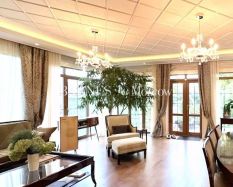 ID: 11791 Рублево-Успенское шоссе, 8 км от МКАД, Барвиха. Поселок Речной. Состав помещений:Цоколь: кинотеатр, бильярдная, сигарная, с/у, постирочная, техническое помещение. Квартира для персонала с отдельным входом: 2 спальни, кухня, с/у с душевой.1-й этаж: прихожая, холл, гостиная с камином и обеденной зоной, кухня-столовая, гостевой с/у, гостевая спальня с с/у, SPA-зона с бассейном, сауной, хамамом, душевой, с/у.2-й этаж: мастер-спальня с двумя гардеробными, ванной комнатой и выходом на террасу, детская зона: 2 спальни с ванными комнатами, спальня/комната для занятий, спальня для няни с с/у, холл, кабинет/спальня, с/у.Предлагается в долгосрочную аренду дом ''под ключ'' с мебелью площадью 1000 кв.м. на участке с ландшафтным дизайном 20 сот. в элитном коттеджном поселке ''Речной'', на Рублево-Успенском шоссе. В доме 5 спален, стильная гостиная с камином и обеденной зоной, кинотеатр, Spa-зона с бассейном, сауной, хамамом. В цоколе дома расположена квартира для персонала, на участке отдельно стоящий гараж на 3 автомобиля.На участке: Гараж на 3 автомобиля.Залог 40 000 ₽