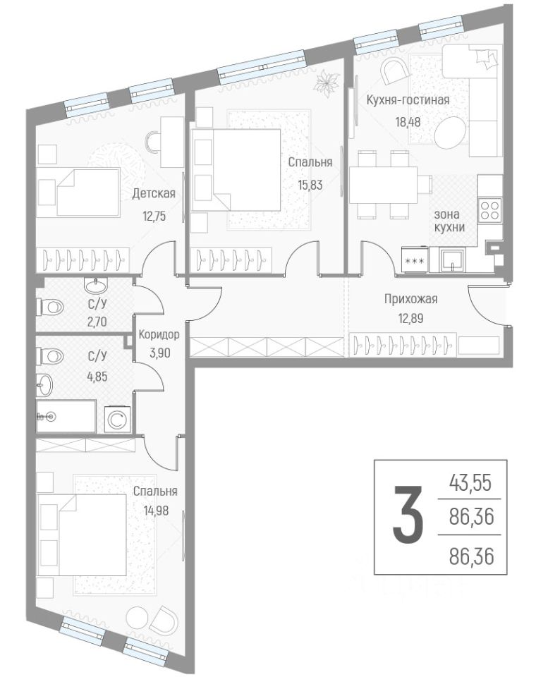 Общая площадь86,5 м2