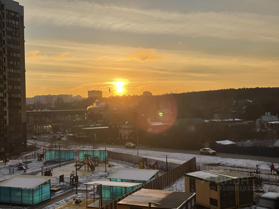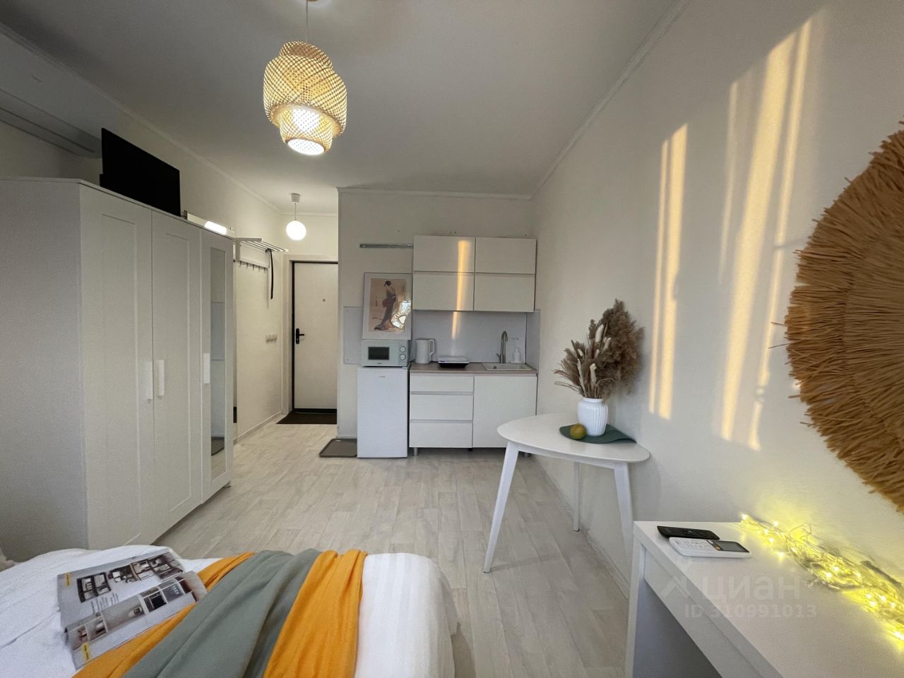 Студия - очень светлая, но без палящих лучшей солнца. Скромного размера, при этом очень уютная. Окна смотрят в тихий двор и частный сектор с опушкой леса. И подарят вид на невероятной красоты закаты.