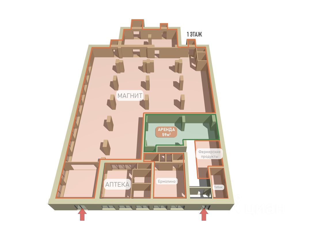 Аренда помещения 59 м² на 1 этаже ТЦ в жилом массиве г. Краснознаменск.