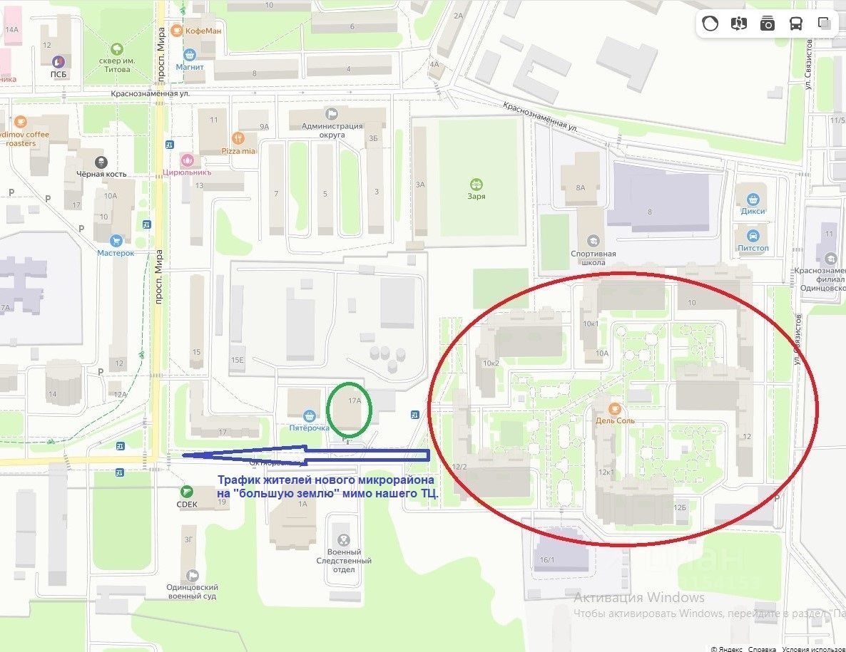 Соседи надежные долгосрочные арендаторы, обеспечивающие дополнительный высокий трафик: ''Магнит'', ''Аптека.ру'', ''Ермолино'', разливное пиво, табак / вейпы, фермерские продукты, пользующиеся популярностью у местных жителей.