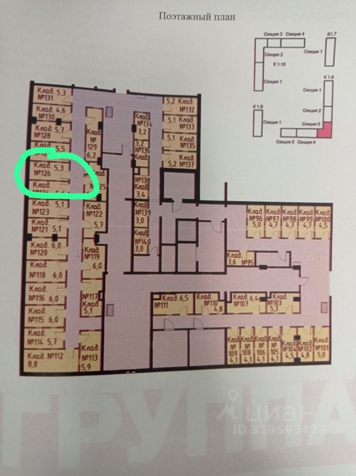 Продам кладовое помещение МО г Одинцово, ЖК Одинцово-1, ул Каштановая д 4 (3 подъезд) 5,2 м2. Оборудована стеллажами, с ремонтом, прямоугольной формы. Проход удобный, свет включается по датчику движения, системы предупреждения о пожаре. Вход по магнитным ключам через подьезд на лифте, на минус первый этаж, второй вход со двора. Территория под охраной с видеонаблюдением. Торг уместен.