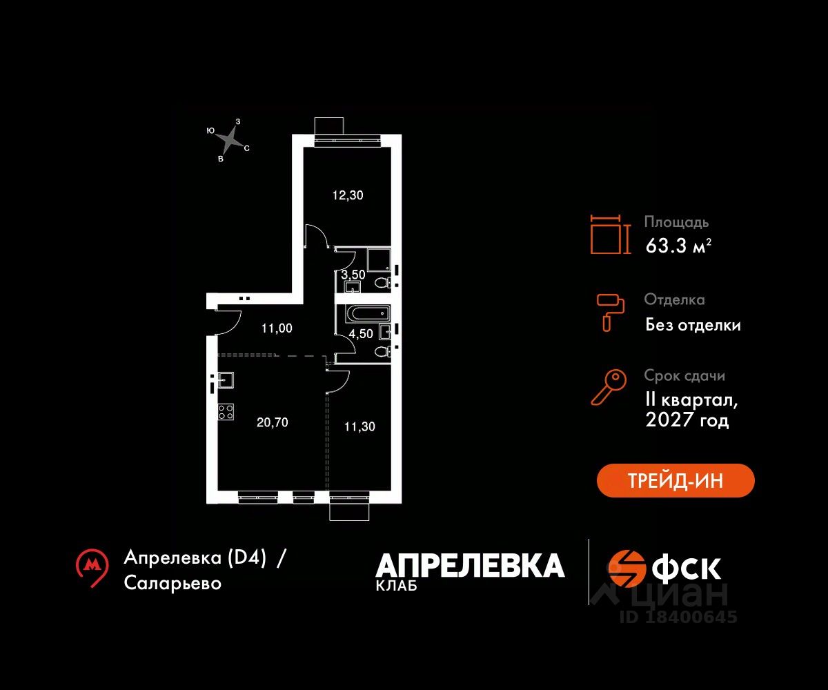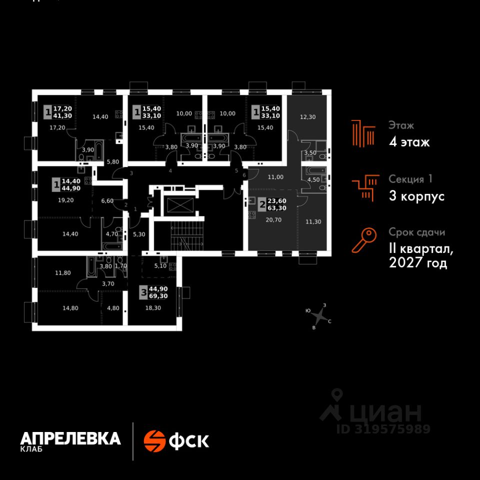 Общая площадь63,3 м2