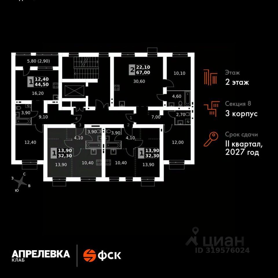 Прямая продажа от застройщика! Загородный жилой комплекс класса Комфорт Плюс. Продаётся 1-к квартира номер 200 общей площадью 32.3 кв.м на 2-м этаже 5 этажного дома. Без отделки.