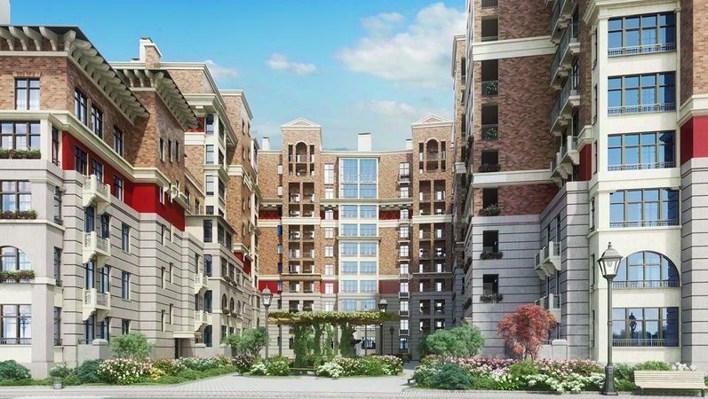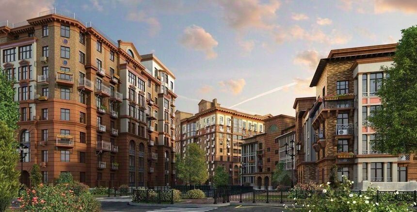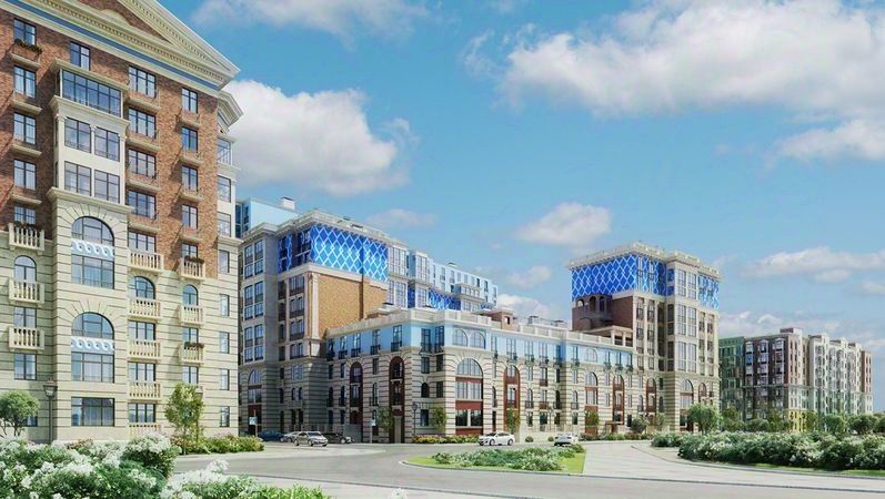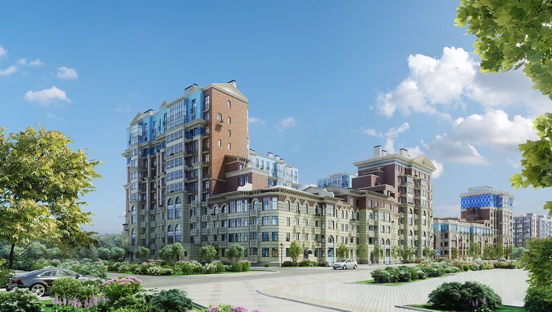 Объект состоит из 12-ти многоэтажных жилых домов от 4 до 12 этажей, выполненных в едином классическом стиле. Для жителей комплекса предусмотрены кладовые помещения. На территории объекта также построят школу для 1100 учащихся и детский сад для 380 малышей.
