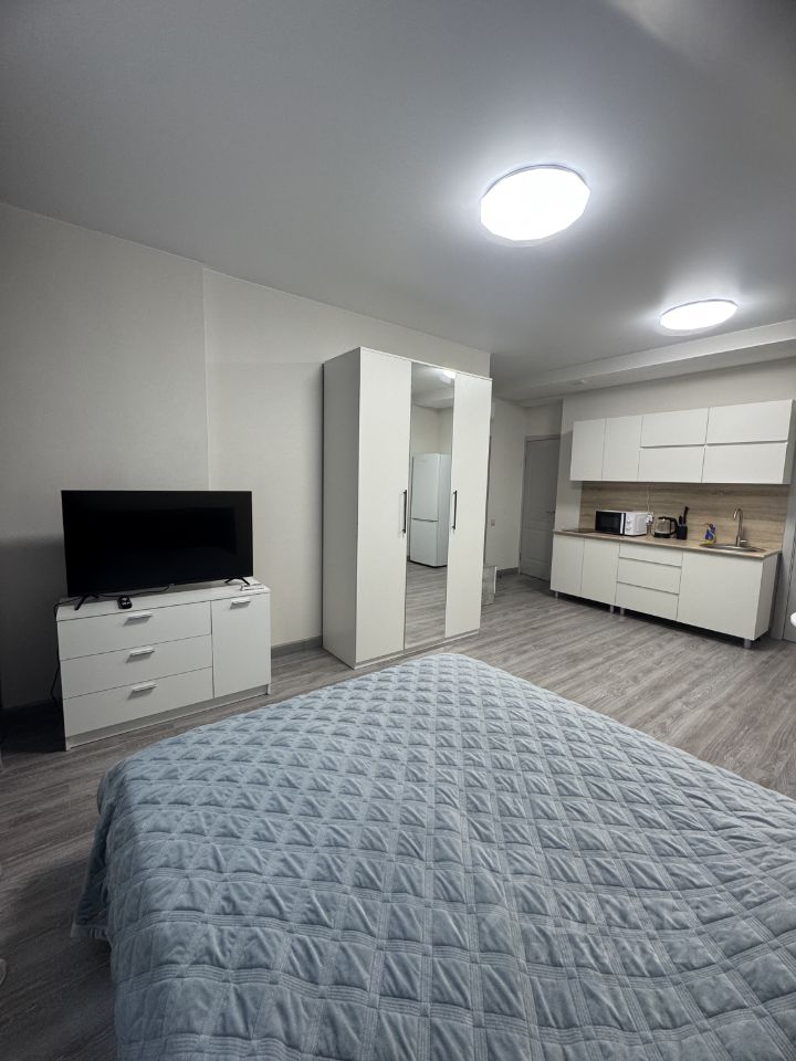 Сдаю очень уютную студию , есть всё для комфортного проживания: большая 2-х спальная кровать с хорошим матрасом , телевизор, большой шкаф , кухонная большая зона , холодильник, кондиционер, большая ванная , стиральная машинка, и есть дополнительная комната где можно сделать гардеробную или маленькую комнату!