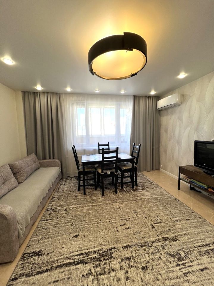 Мечтаете о переезде без хлопот? Ваша мечта сбывается! Эта современная евротрешка на 16-м этаже в Краснознаменске (ул. Гагарина, 19) полностью готова к заселению. Вам осталось только привезти личные вещи и начать наслаждаться жизнью в новом доме. Просторная кухня-гостиная (18,6 м²) станет сердцем вашего дома. Здесь уже есть вся необходимая техника, включая посудомоечную машину, которая позаботится о чистоте после семейных обедов и дружеских ужинов. А чтобы летний зной ничто не омрачало вашего комфорта, в гостиной уже установлена современная сплит-система (кондиционер), которая подарит приятную прохладу в любую жару. Выход на балкон наполняет пространство светом и воздухом, а из окон открывается вид на уютный город. Главное преимущество — две изолированные спальни (12,3 м² и 10,3 м²). Редкая и невероятно практичная планировка! Одна — для родителей, вторая — для ребенка, гостей или под полноценный кабинет. Теперь у каждого члена семьи есть свое личное пространство для отдыха и работы. Полный комплект для комфортной жизни: • Комфорт в любую погоду: в гостиной установлен кондиционер. • Раздельный санузел: практичная и аккуратная отделка плиткой под мрамор. В просторной ванной комнате (3,1 м²) удобно разместилась стиральная машина, а также установлена классическая чугунная ванна и современный подвесной унитаз с инсталляцией. • Техника на кухне: для вашего удобства есть посудомоечная машина, встроенный духовой шкаф, встроенная электроплита и вытяжка. • Полное оснащение: Практически вся мебель и техника остаются новым хозяевам. Никаких дополнительных затрат!