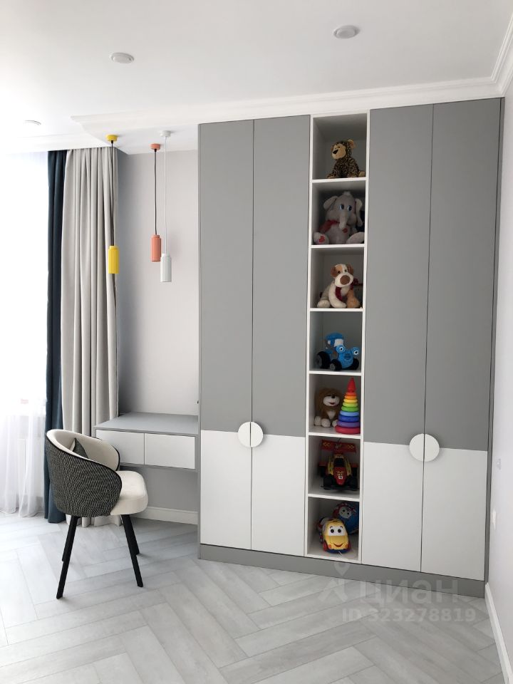 Квартира отличается продуманной планировкой: • При входе расположена вместительная гардеробная зона с прачечной • Просторная кухня-гостиная с большими окнами и видом на Москва-Сити • Изолированные спальня и детская со встроенными системами хранения • Отдельный кабинет с большой рабочей зоной у окна и гардеробной • Два совмещенных санузла