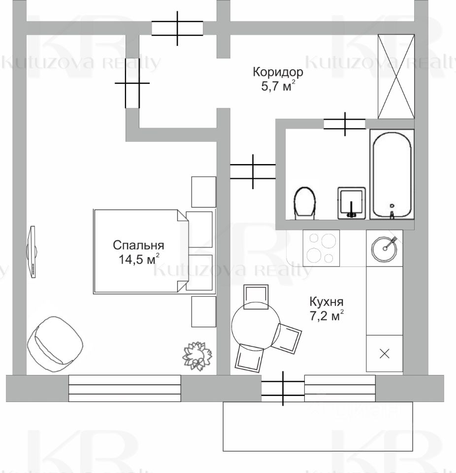 Планировка: -комната 14,5 кв. м правильной формы, удобно делится на зону отдыха и рабочее место, -кухня 7,2 кв. м с установленным гарнитуром и техникой, -санузел совмещенный, отделан плиткой, -лоджия застеклена, -удобная прихожая с местом под шкаф.