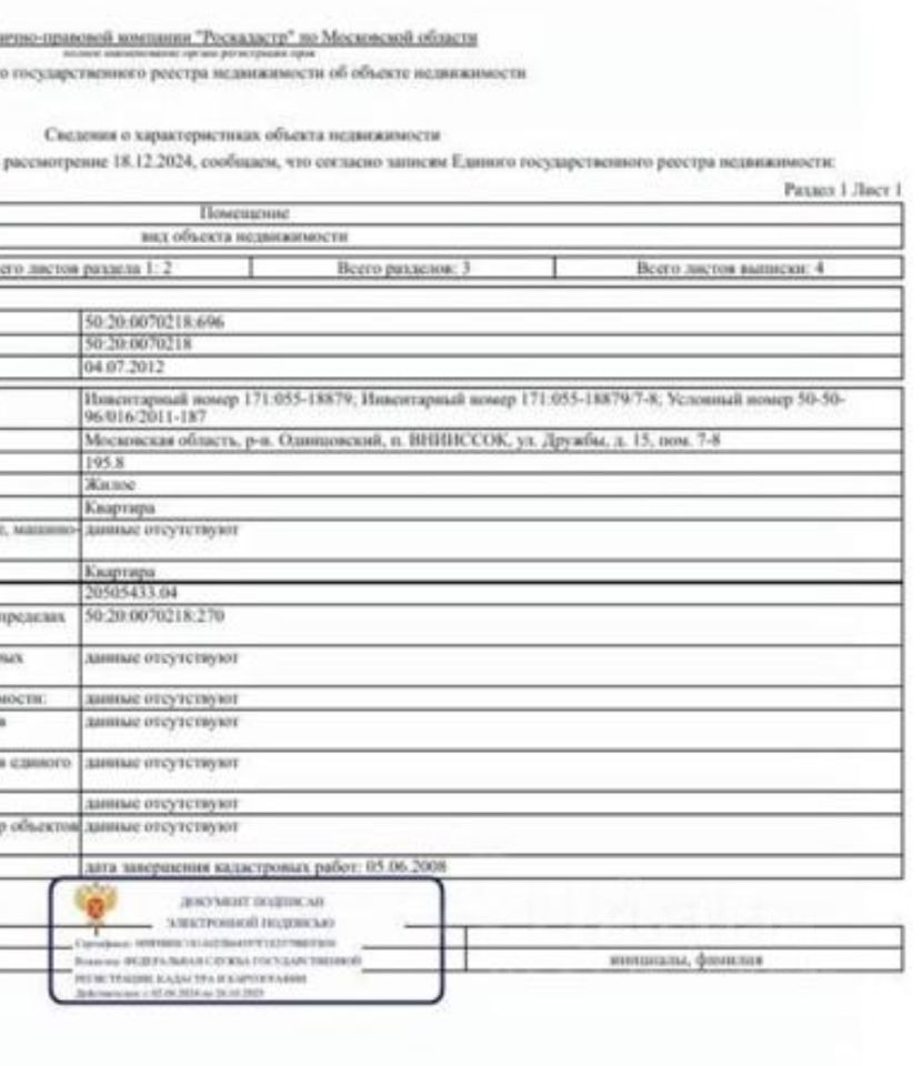 Площадь квартиры 195,8 кв.м. на 4 этаже, по адресу: Московская область, Одинцовский район, п. ВНИИССОК, ул. Дружбы, д.15,