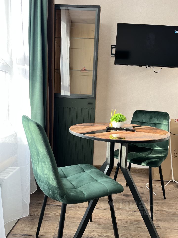 В квартире есть всё необходимое для комфортного проживания. Дизайнерский ремонт, качественная мебель в комнате и на кухне создают атмосферу уюта. Оснащена необходимой техникой: холодильник, телевизор и стиральная машина. Санузел совмещённый, в ванной комнате установлена ванна. Окна выходят во двор, поэтому в квартире всегда тихо и спокойно.