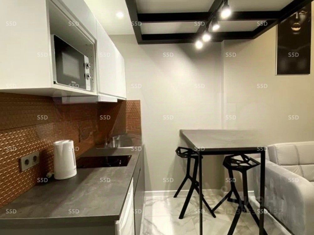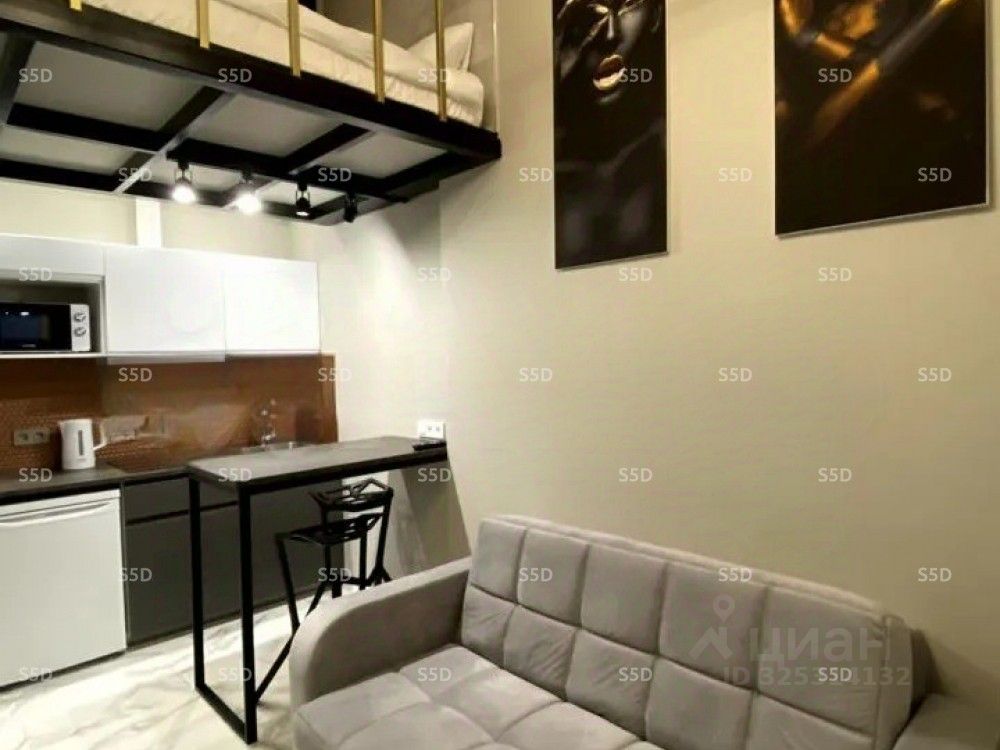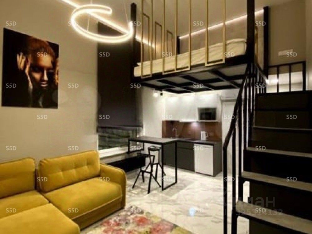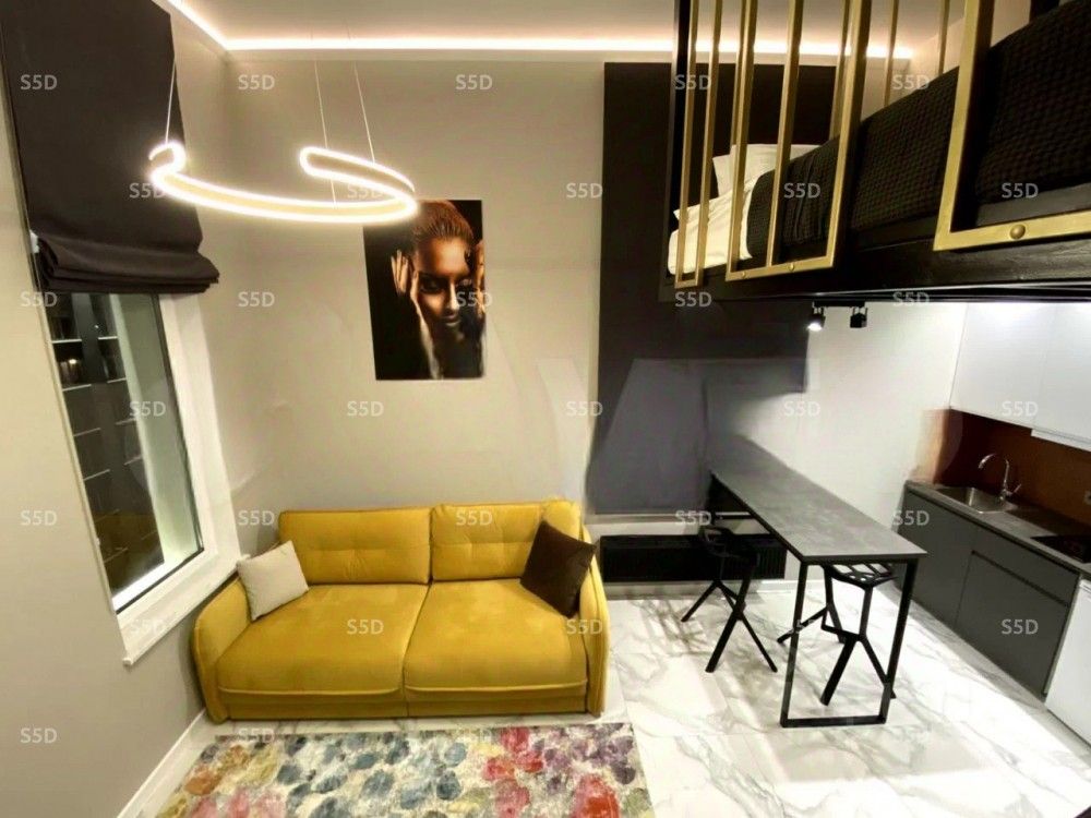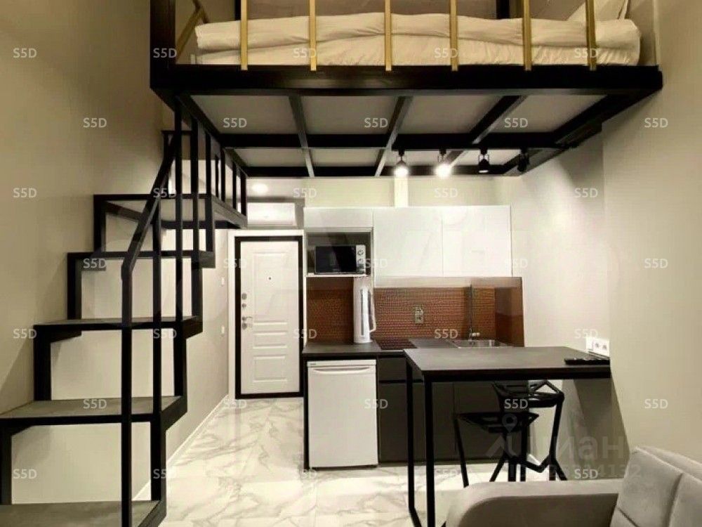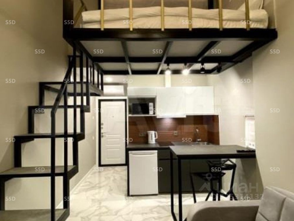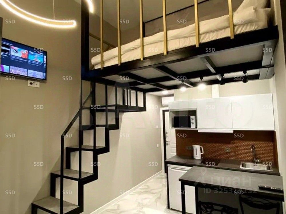 Студия 2: Двухэтажный пентхаус, 22 м2: 1 ЭТАЖ: Зона отдыха: Диван (раскрадывается в двуспальное место шириной 160 см), телевизор SМАRТ 32 дюйма. Зона Кухни: варочная панель Наnsа (стеклокер