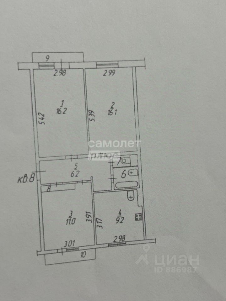 Продаётся просторная 3-комнатная квартира 62.4 м² с двумя балконами!
