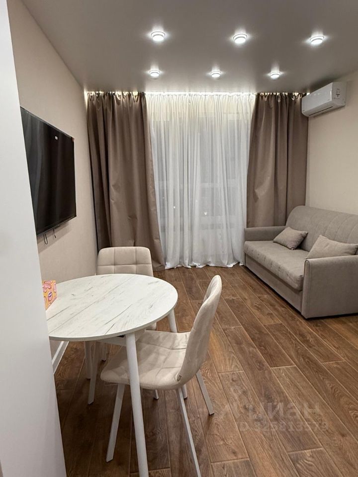 В квартире выполнен дизайнерский ремонт, что создает современную и комфортную атмосферу. Вся необходимая мебель уже есть как на кухне, так и в комнате. Совмещенный санузел оборудован душевой кабиной. Из техники в вашем распоряжении кондиционер, холодильник, телевизор и стиральная машина. Окна выходят во двор, поэтому в квартире всегда тихо и спокойно.